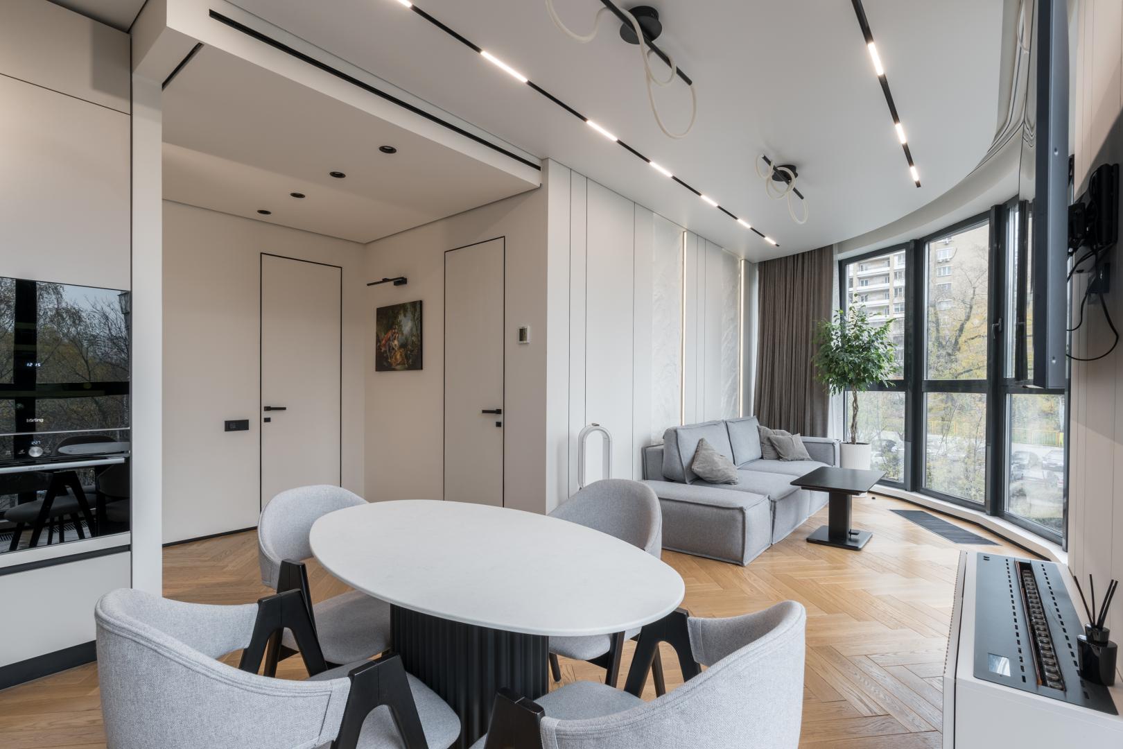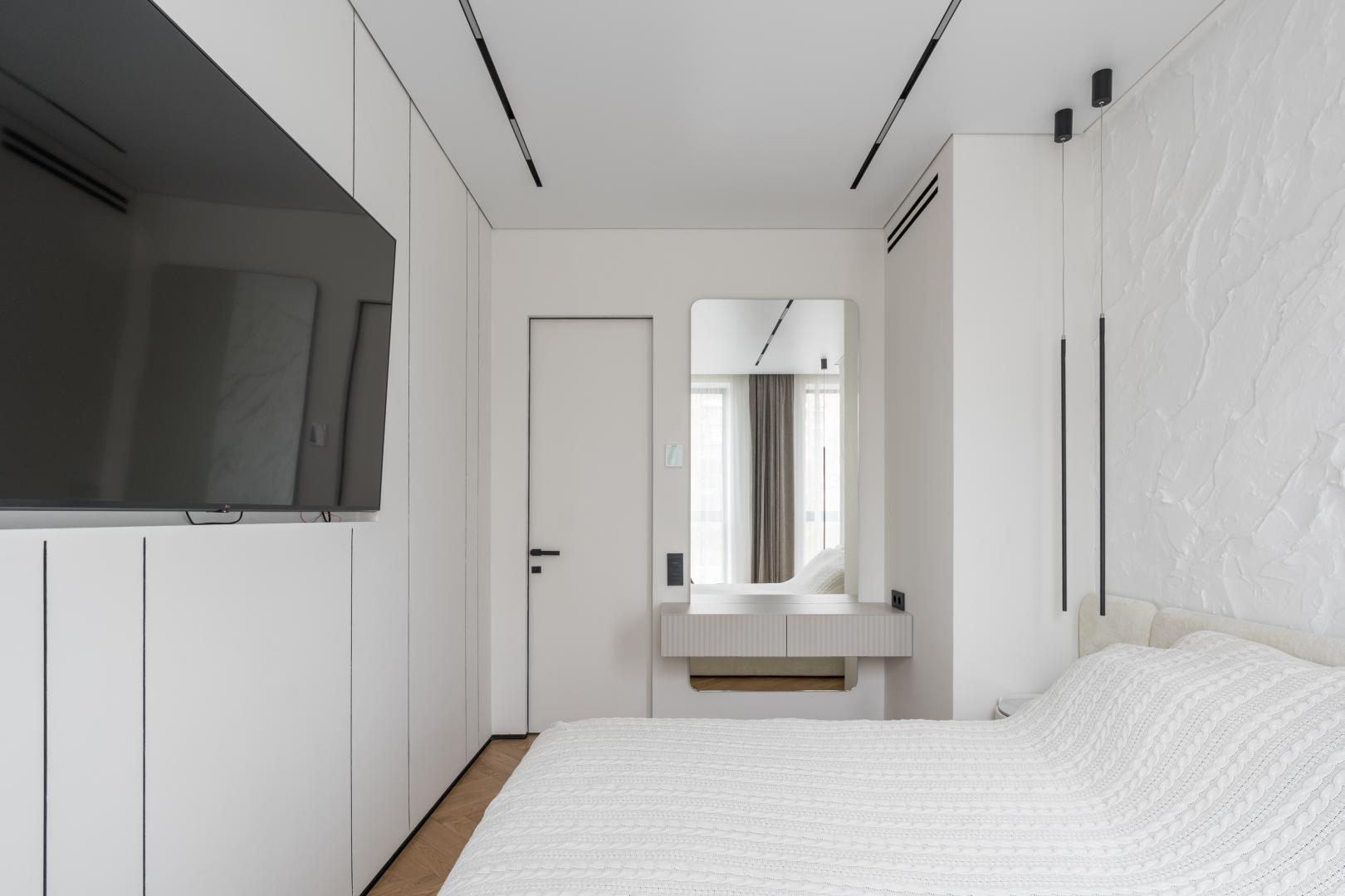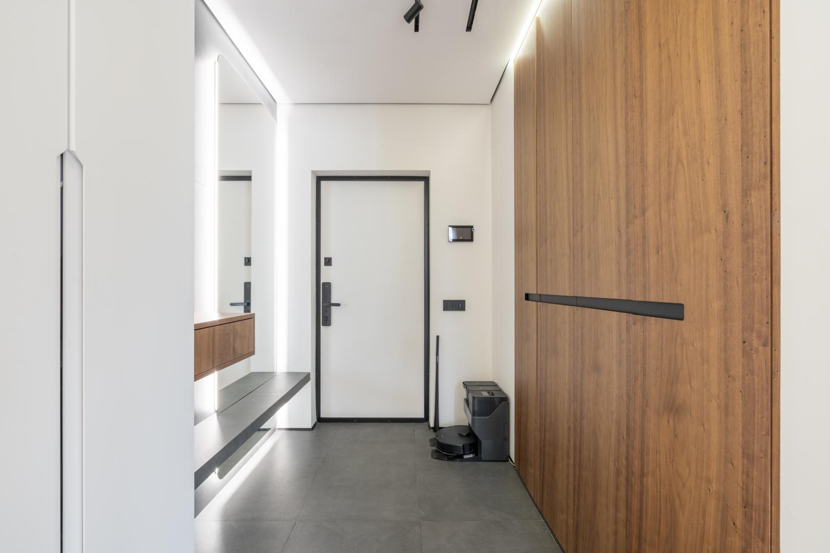 В отделке квартиры использованы только современные, высококачественные и экологичные материалы. Квартира укомплектованы всей необходимой мебелью(изготовленной под заказ) и техникой ведущих производителей для комфортного проживания(много пространства для хранения вещей).