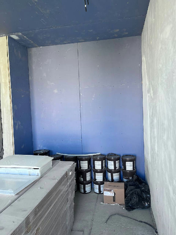 Стены: акустический ГКЛ кнауф + комплекс шумоизоляции WOLF BAVARIA, оштукатурены высококачественной штукатуркой машинным нанесением.