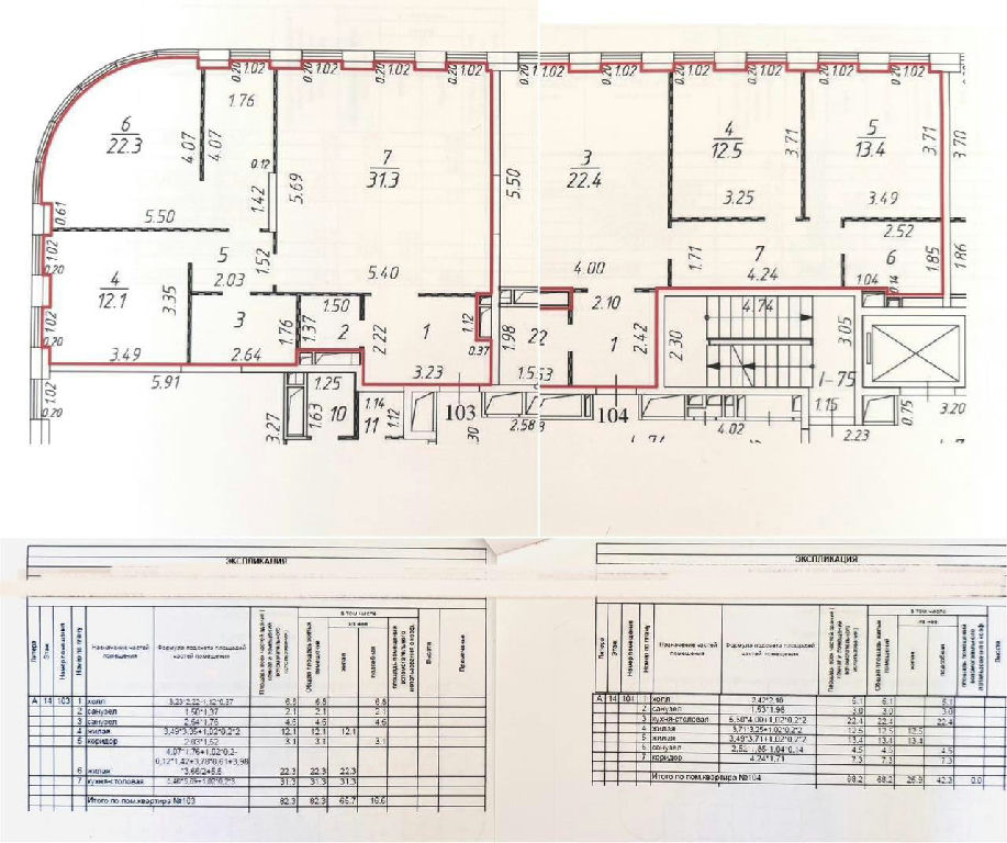 Комнаты: 31.3-22.4-12.5-13.4 м2